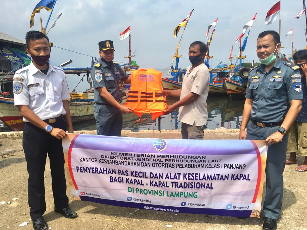 Kementerian Perhubungan cq Direktorat Jenderal Perhubungan Laut melalui Kantor Kesyahbandaran dan Otoritas Pelabuhan (KSOP) Kelas I Panjang memberikan bantuan secara gratis berupa Pas Kecil Kapal Tradisonal dan Alat Keselamatan Kapal kepada para nelayan dan awak kapal tradisional di Provinsi Lampung.