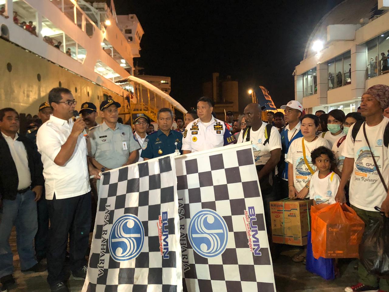 Direktur Jenderal Perhubungan Laut Kementerian Perhubungan, R. Agus H. Purnomo melepas 500 orang penumpang mudik graris dengan kapal KM. Bukit Siguntang dari Pelabuhan Makassar ke Pelabuhan Maumere pada hari ini, Minggu (22/12).
