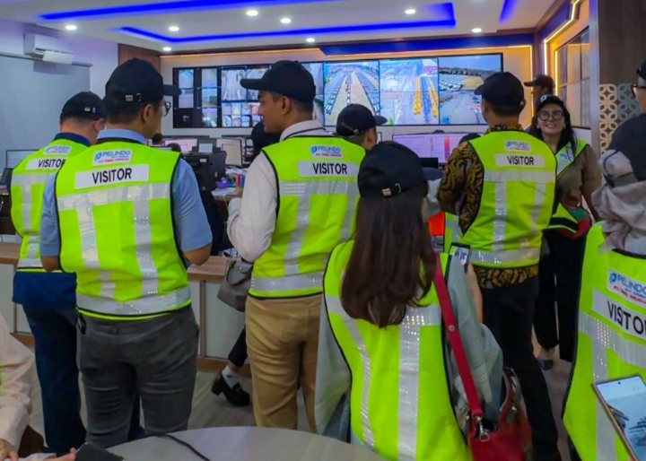 Lalu turun di dermaga IPCC untuk melihat kegiatan operasional di terminal internasional dan berkunjung ke control room operasional IPCC yaitu ruang ITMS (Integrated Monitoring Terminal System).