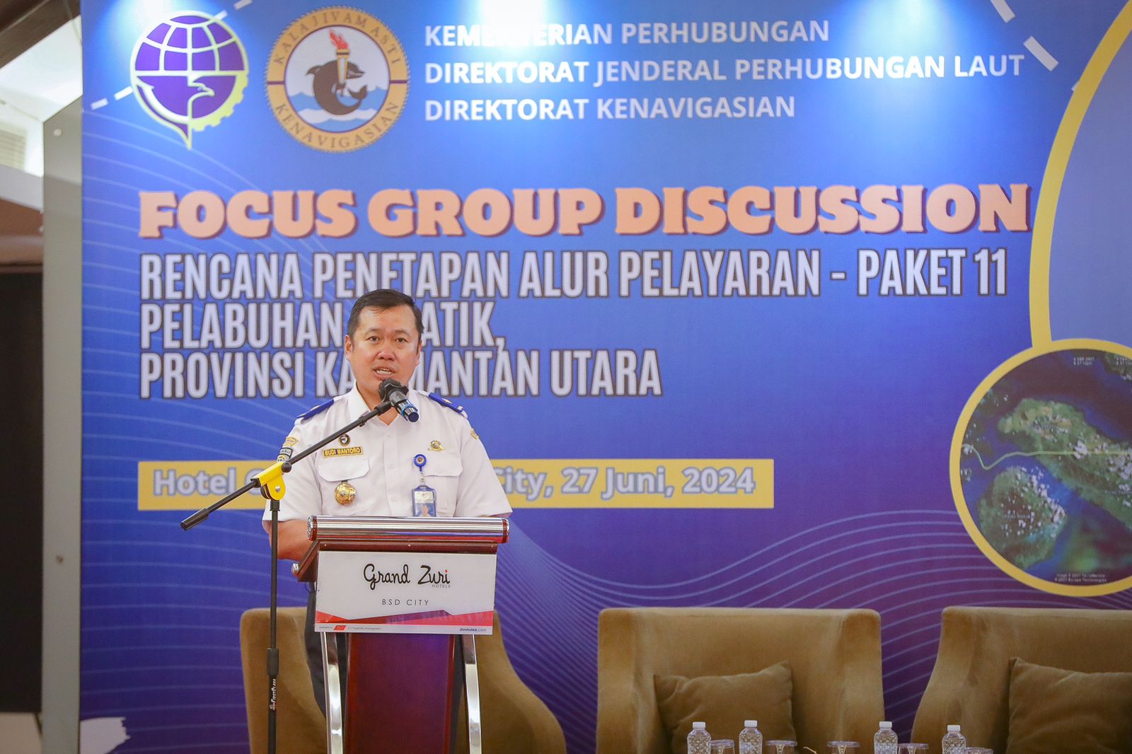 Hal ini disampaikan Direktur Kenavigasian, Capt. Budi Mantoro saat membuka FGD Rencana Penetapan Alur-Pelayaran Masuk Pelabuhan Sebatik, di Hotel Grand Zuri BSD City, Kamis (27/6).