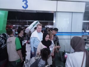 Tampak para penumpang yang turun dari kapal cukup tertib, ada yang lewat Garbarata, dan tak sedikit yang lewat tangga yang sudah disiapkan para petugas.
