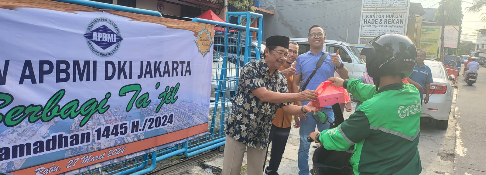 Dewan Pengurus Wilayah Asosiasi Perusahaan Bongkar Muat Indonesia (DPW APBMI) DKI Jakarta hari ini (Rabu, 27 /3/2024) menggelar acara Berbagi Ta’jil Ramadhan 1445 H, dengan membagikan ratusan paket untuk berbuka puasa bagi yatim, dhuafa dan masyarakat di sekitar kantor organisasi itu di Jl.Swasembada XI Tanjung Priok, Jakarta Utara.