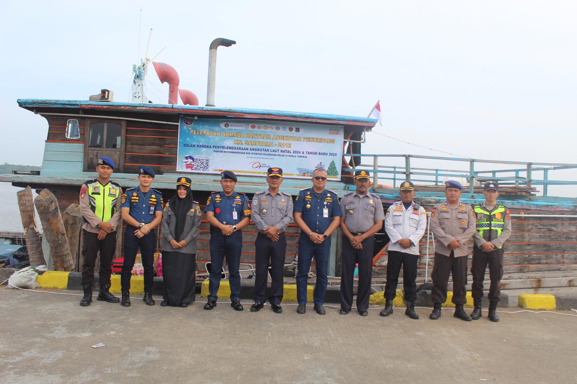 Kantor Kesyahbandaran dan Otoritas Pelabuhan Kelas IV Kuala Tungkal bersama stakeholder dan instansi terkait melepas armada bantuan angkutan penumpang untuk mendukung kelancaran mobilitas masyarakat dalam rangka perayaan Natal 2024 dan Tahun Baru 2025.