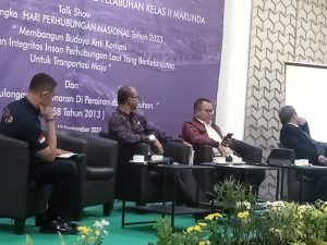Kegiatan talk show ini dalam rangka hari Perhubungan Nasional tahun 2023, dengan tema ‘Membangun Budaya Anti Korupsi dan Peningkatan Integritas Insan Perhubungan Laut Yang Berkelanjutan Untuk Transportasi Maju’ dan ‘Penanggulangan Pencemaran di Perairan dan Pelabuhan’ sesuai dengan (PM 58 tahun 2013).
