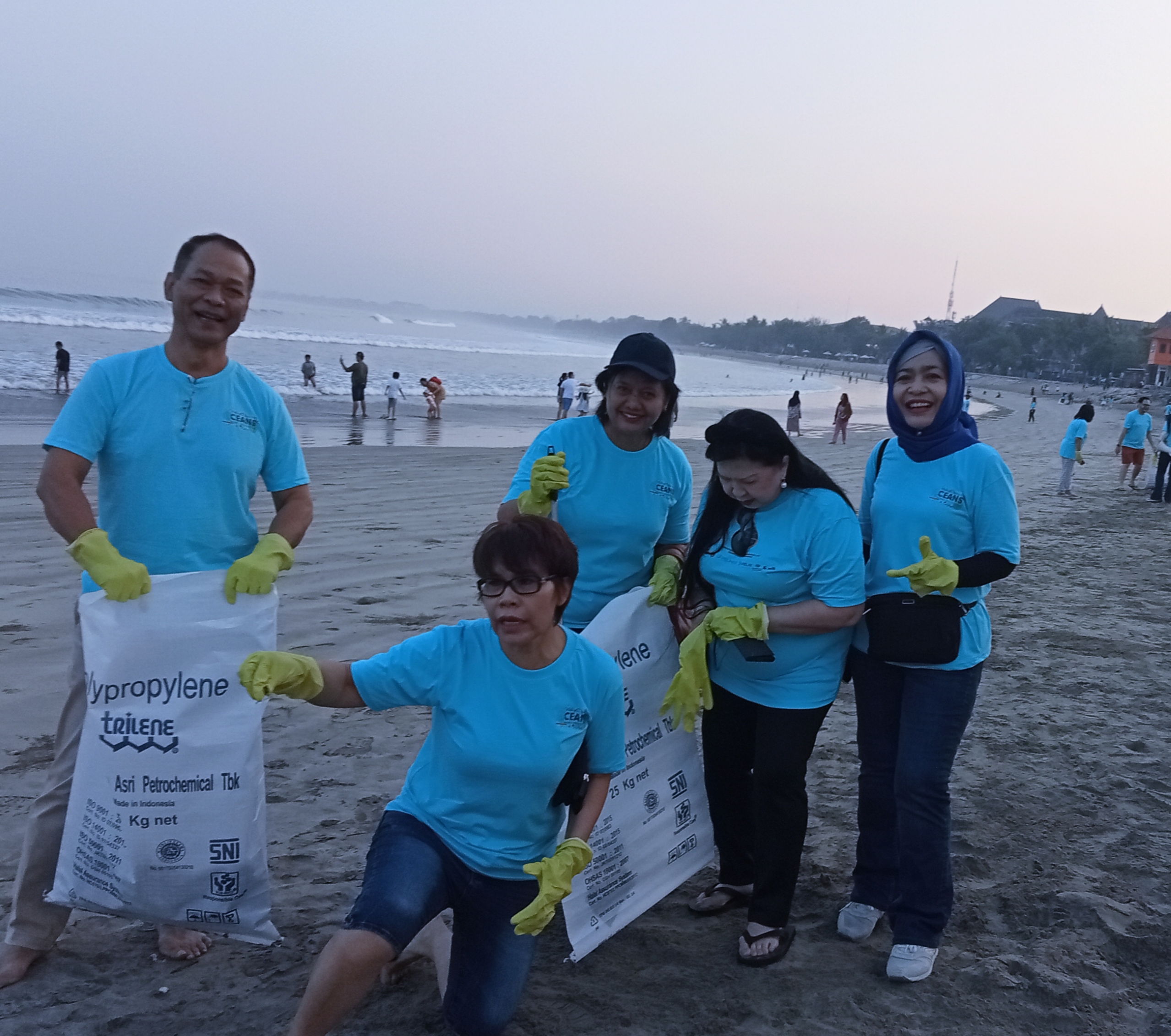 Dalam kegiatan bersih sampah di pantai Kuta kalo ini, tampak Ketua Umum WIMA INA, kepala Bea Cukai Kalimantan Bagian Timur, Sekjen ABUPI, Sekjen WIMA INA serta pengurus lainnya, ikut memungut sampah.