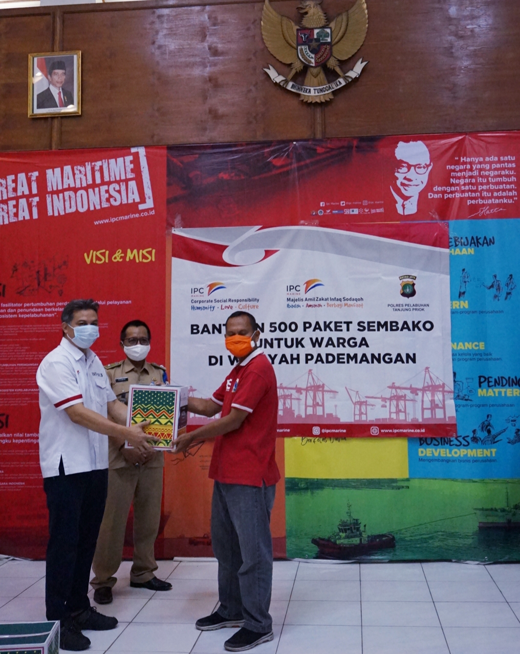 Penyerahan paket sembako ini disampaikan oleh Direktur Keuangan dan SDM IPCM, Rizki Pribadi Hasan dan juga wakil dari Polres Tanjung Priok, Iptu Sudirman Agus yang dilakukan secara simbolis kepada warga yang diwakili oleh masing-masing ketua Rukun Warga di wilayah Pademangan, disaksikan Lurah Ancol, Rusmin dan Ketua Maziska Eddy Haristiani.