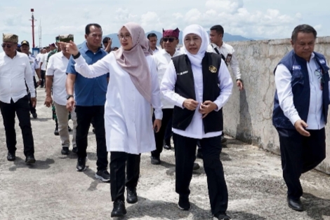 Gubernur Jawa Timur Khofifah Indar Parawansa bersama Bupati Banyuwangi Ipuk Fiestiandani meninjau kesiapan infrastruktur dermaga di Pelabuhan Pengumpan Regional (PPR), Marina Boom pada Jumat (4/4/2025).