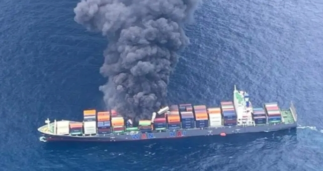 Kapal berbendera Singapura, WAN HAI 503 yang mengalami insiden sekitar 144 kilometer dari lepas pantai negara bagian Kerala di India selatan.