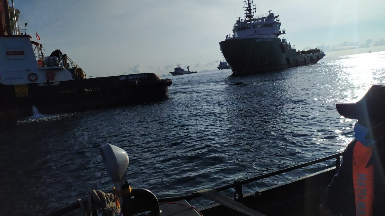 “Dalam penanganan kejadian ini, kami bersinergi dengan Angkatan Laut dan Bea Cukai. Kapal patroli kami pun ikut mengawal sampai posisi berlabuh jangkar yang aman,” kata Handry.
