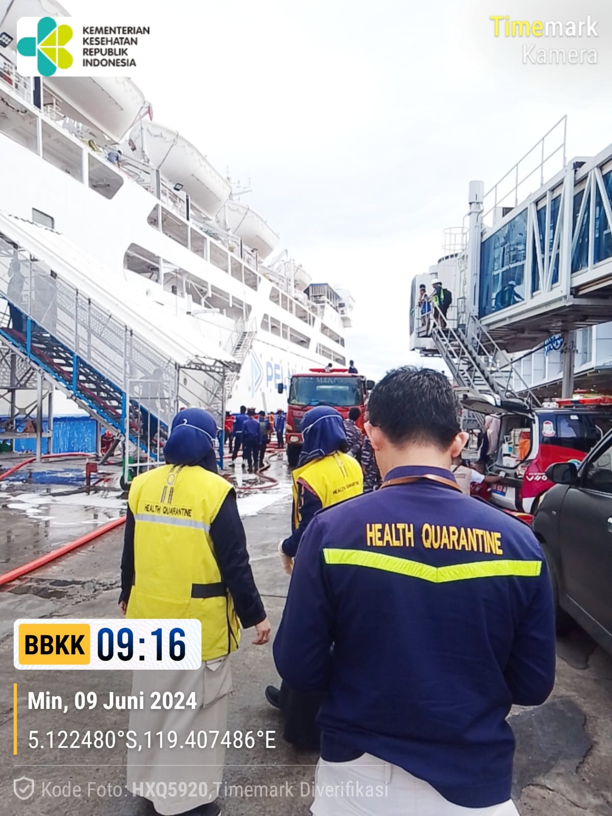 “Alhamdulillah seluruh penumpang dari atas kapal sudah berhasil turun dengan selamat dan sekarang seluruh calon penumpang itu sedang berada di terminal penumpang. Kapasitas terminal penumpang di Pelabuhan Makassar sangat siap sekali dengan kapasitas total kurang lebih 3.000 orang. Dan saat ini kondisi sekarang ada sekitar 1.500 orang penumpang,” tambahnya.