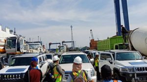 Dermaga 107 pelabuhan Tanjung Priok, Jakarta Utara, Senin (19/3) ramai dengan kedatangan mobil-mobil dan motor gede milik bupati non aktif Hulu Sungai Tengah, Abdul Latif.