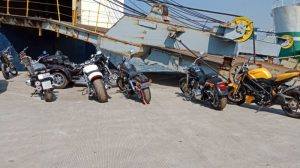 Ada 8 mobil mewah dan 8 motor gede hasil sitaan komisi pemberantasan korupsi (KPK), yang dibongkar dari kapal sekitar jam 13.00 wib, datang dari Banjarmasin.