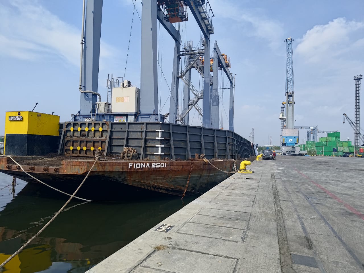 Relokasi 2 unit RTGC dari pelabuhan Tanjung Priok menggunakan kapal tongkang Fiona 2501 kapasitas 270 feet menuju Terminal Teluk Lamong (TTL).