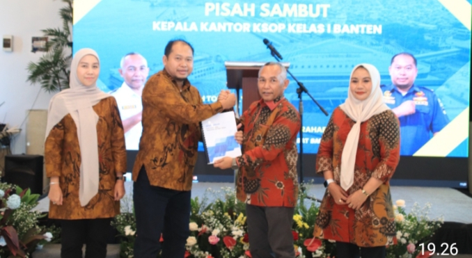 Mukhlish Tohepaly, Kepala Kantor Kesyahbandaran dan Otoritas Pelabuhan (KSOP) Kelas I Banten, resmi menyerahkan jabatannya kepada pejabat baru, Capt. Bharto Ari Raharjo, M.Si. pada Selasa (26/05/2025), di Banten.
