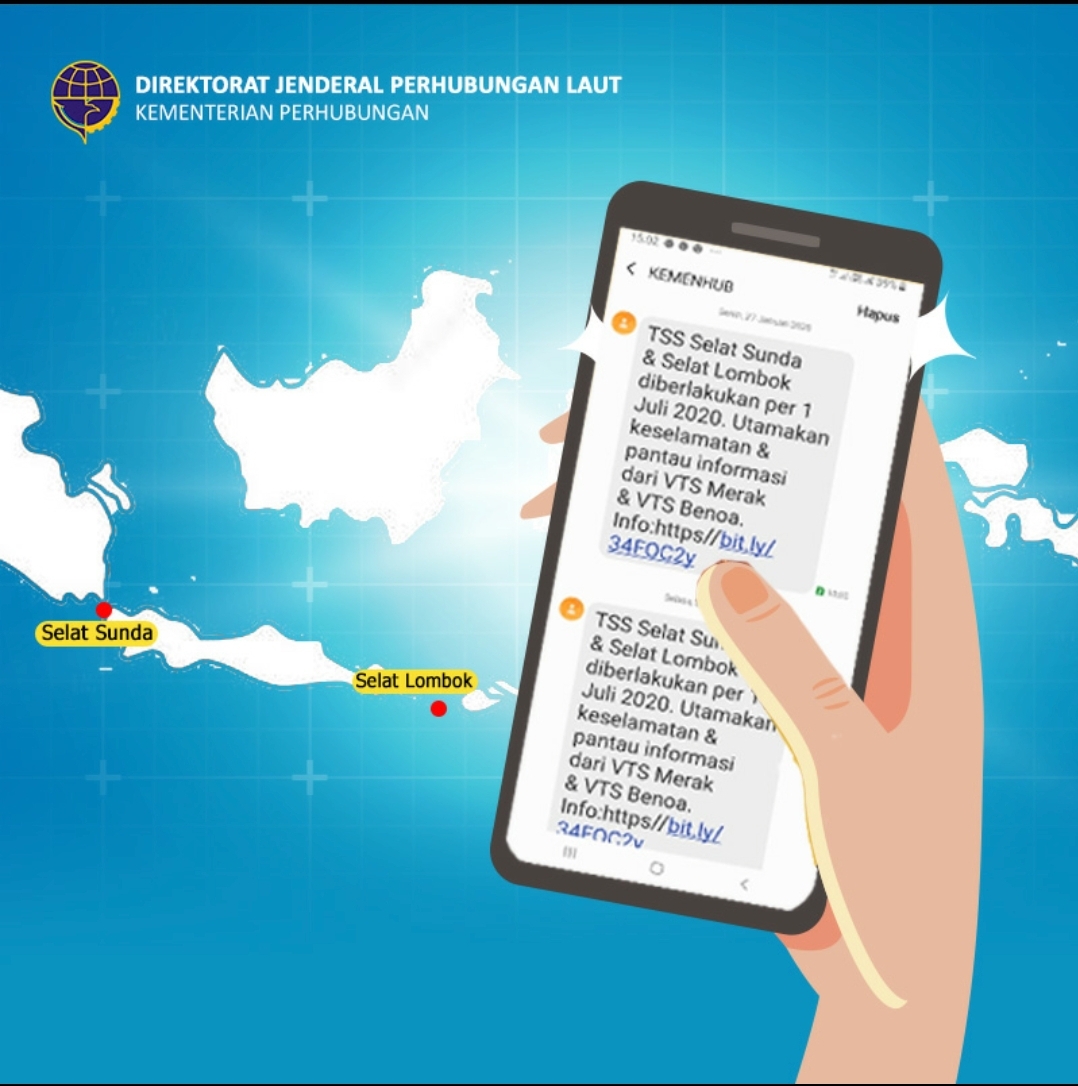 Kementerian Perhubungan (Kemenhub) menggandeng Kementerian Komunikasi dan Informatika (Kominfo) untuk melakukan sosialisasi rencana pemberlakuan Traffic Separation Scheme (TSS) di Selat Sunda dan Selat Lombok mulai tanggal 1 Juli 2020 melalui pesan pendek (SMS Broadcast) yang dikirimkan kepada masyarakat yang berada di sekitar wilayah Selat Sunda dan Selat Lombok.