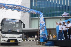 Sebanyak 6.000 pemudik gratis Lebarang Bareng BUMN 2019 diberangkatkan Pelabuhan Indonesia I, diberangkatkan secara serentak ke enam kota di 4 provinsi, yakni Medan, Lhokseumawe, Sibolga, Pekanbaru, Kandis, dan Perawang.