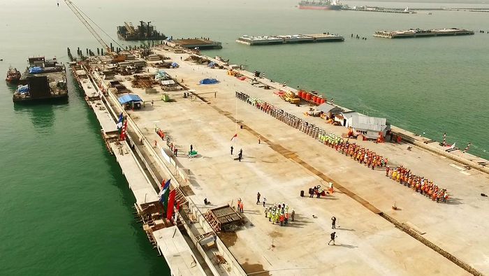 Untuk diketahui, pembangunan Pelabuhan Kuala Tanjung dimulai 2015 dengan investasi Rp34 triliun yang dibagi menjadi empat tahap. Pembangunan tahap I berupa trestle sepanjang 2,75 km, dermaga 1.000 m, dan kedalaman 16-17 meter low water spring (LWS) yang mampu disandari mother vessel, lapangan penumpukan peti kemas berkapasitas 500.000 TEUs, dan tangki timbun. Tahap I dijadwalkan beroperasi tahun 2018 ini.