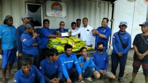 Pengguna Jasa Pelabuhan (Penjaspel) berbagi kepada para buruh (TKBM) berupa Sembako dan uang.