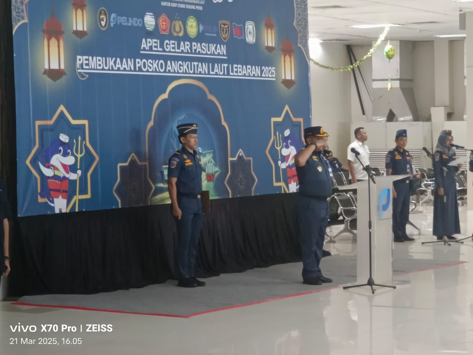 Kepala KSOP Utama Tanjung Priok M. Takwin Masuku meresmikan Apel gelar pasukan Pembukaan Posko Angkutan Laut Lebaran 2025, bertempat di Terminal Penumpang Pelabuhan Tanjung Priok, Jumat sore (21/3).