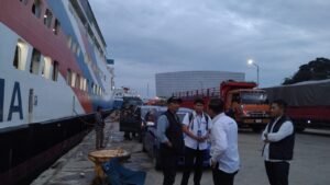 Ocean Week yang juga turut mendampingi, melihat langsung ketiga kapal yang sedang bongkar muat muatannya baik truk, kendaraan pribadi, dan orang.