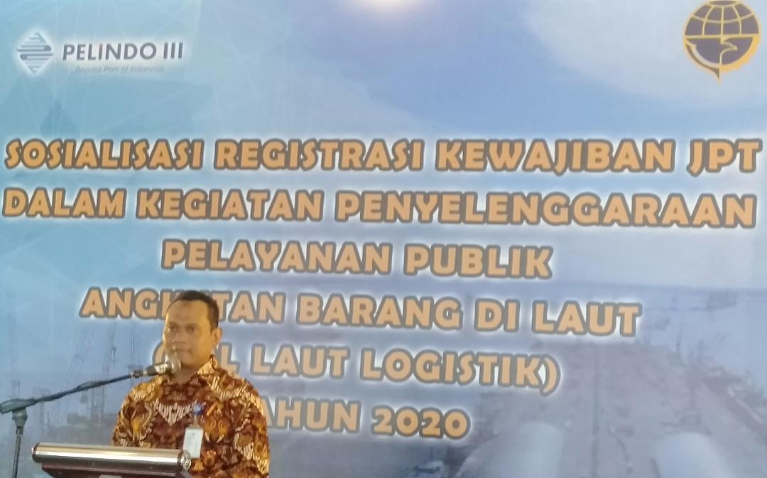 Kemenhub cq Ditjen Perhubungan Laut menggelar Sosialisasi Registrasi Kewajiban JPT (Jasa Pengurusan Transportasi) dalam kegiatan penyelenggaraan Pelayanan Publik Angkutan Barang di Laut (Tol Laut Logistik) Tahun 2020, pada Rabu pagi (29/1), bertempat di Terminal Penumpang Pelabuhan Tanjung Perak Surabaya, Jawa Timur.