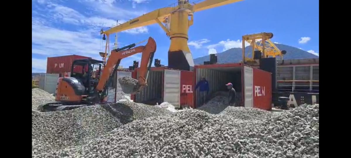 Muatan balik Tol Laut mengangkut 13 Kontainer terdiri dari 12 kontainer berisi Batu Ciping ke Pelabuhan Merauke dan 1 kontainer berisi Batu Ciping ke Pelabuhan Tanjung Perak Surabaya.